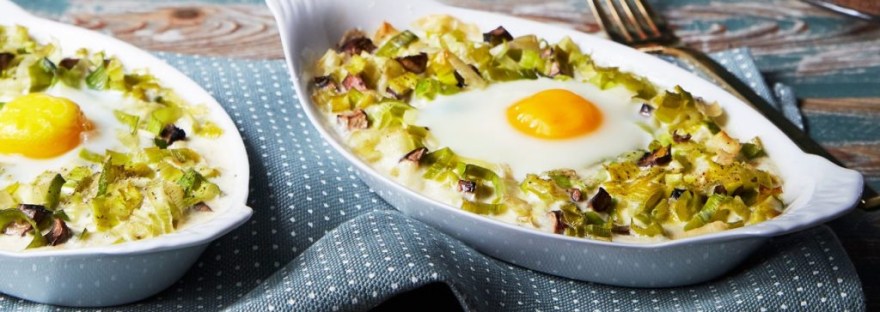 Serve this with a bread of your choice and maybe some corned beef hash and you got a great brunch that is sophisticated, and easy to put together in no time. Next time you want a breakfast that is easy with some panache, try these great Baked eggs in Leeks.