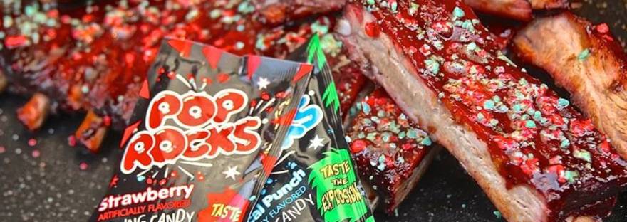 - Dust the tops of the ribs with strawberry-flavored Pop Rocks and tropical punch-flavored Pop Rocks. Serve immediately.